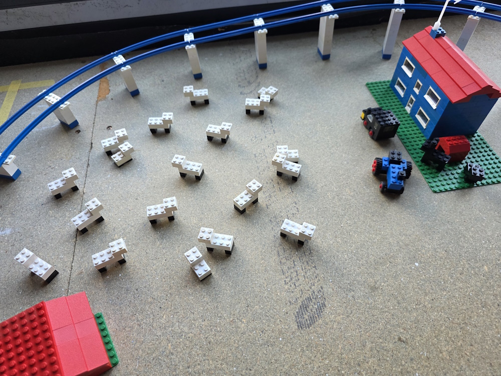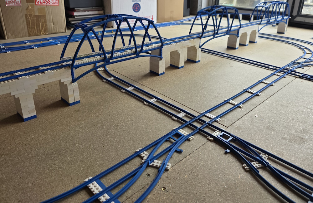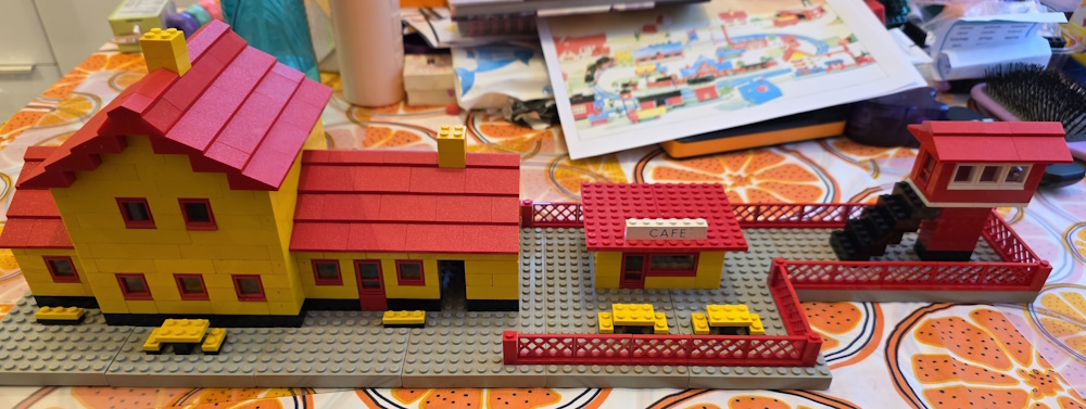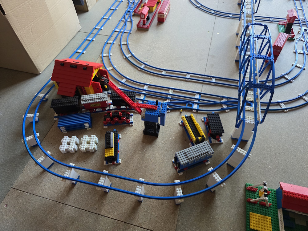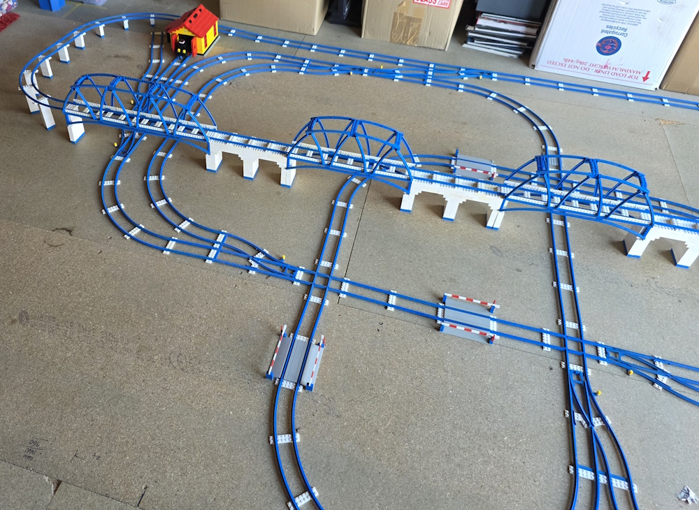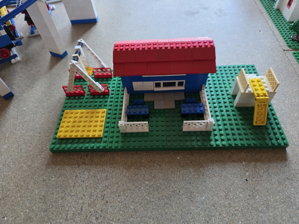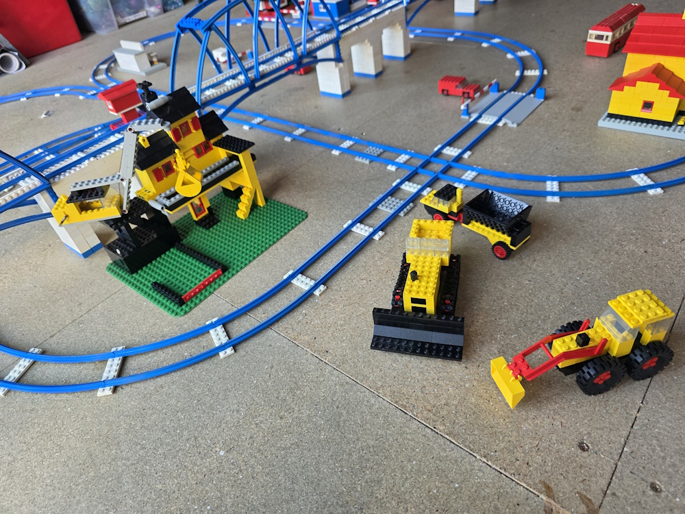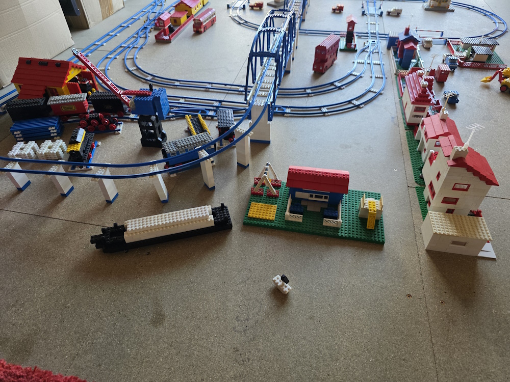 We then laid out the track how we want it and then built buildings and vehicles to go with it. We soon ran out of parts and have to aquire more. You always think you have loads of pieces until you start to build with them.