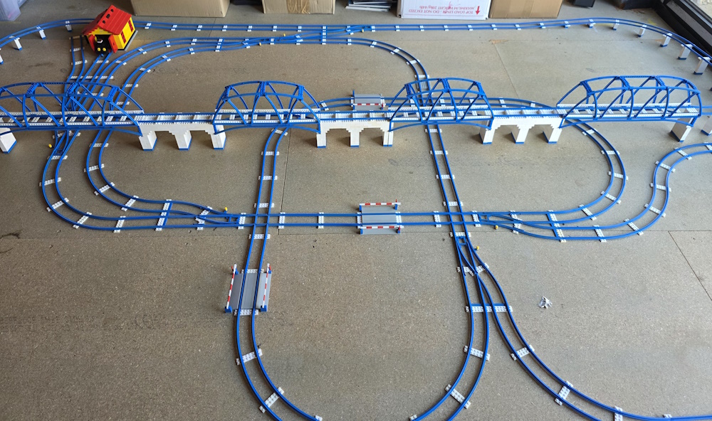 We started our original layout on our kitchen floor and then ran out of room, so we had to move to the unfinished dining room.