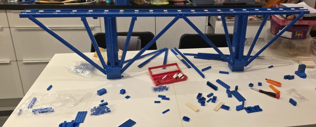 We tried various different designs and methods for constructing it, but ultimately decided we would make a longer version of the brochure bridge but make it tall with larger supports.