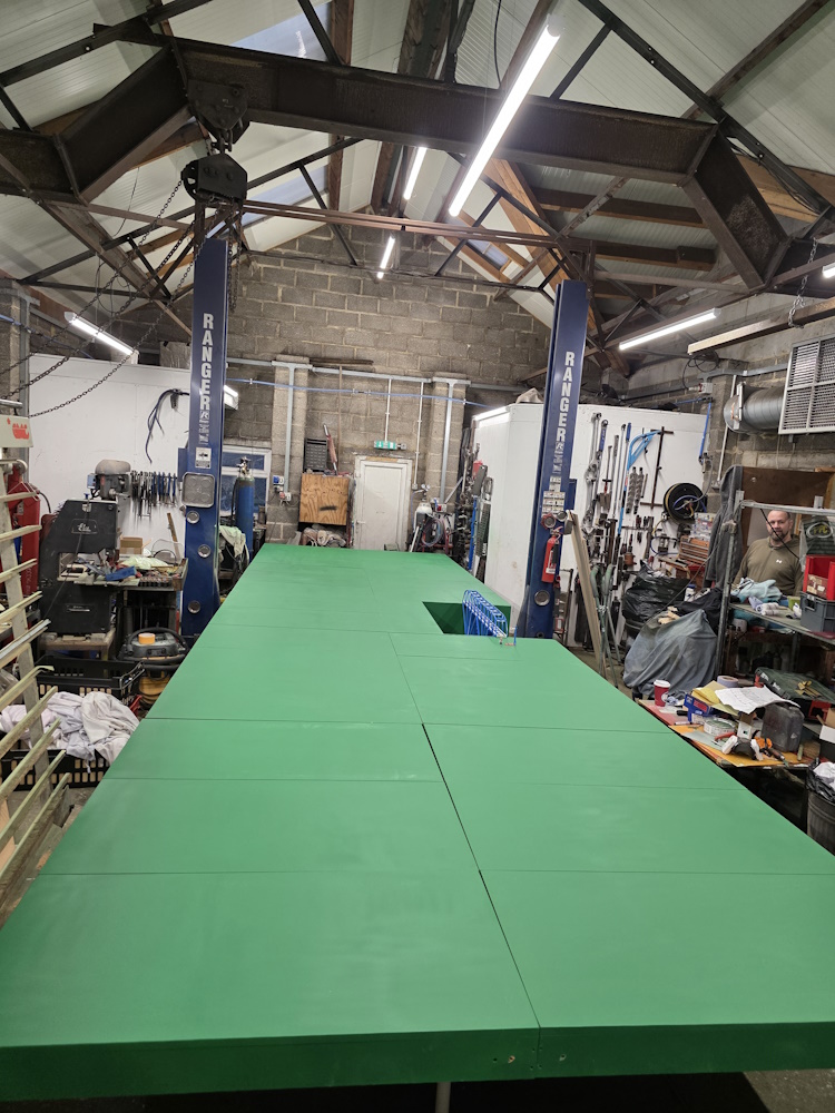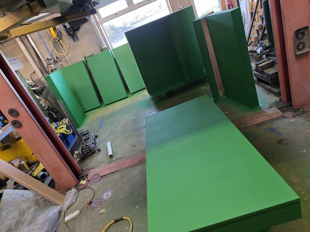 They all got primed, sanded and filled – at this point my father leant a hand with the filler and sanding – I think he was worried that we were not going to get them out of the workshop in time for us to start work again after the new year! The green was sprayed on to give us an even coverage and then left for a few days to dry. A trial assembly was done and thats when we all stood back and suddenly realised just how big this display was going to be!